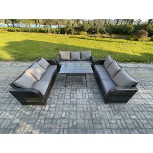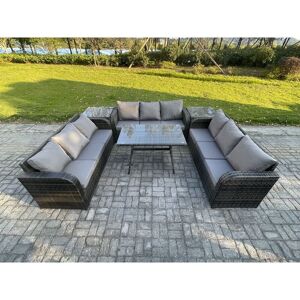 This 9 Seater Modern deluxe rattan garden furniture is best for multiple occasion. The Rattan set is strong durability which lasts for a long time, it also has strong tempered table top glass. Cushions are included and are fitted to the shape of the sofa and chairs for comfort. This wonderful product will help you showcase any garden, patio or conservatory. Set Dimensions: • 1 x Side coffee table :65L x 65W x 66H cm • 3 x 3 Seater Sofa :177W x67D x79H cm • 1 x Rectangular Dining Table :110L x 70W x 70H cm Dark grey mixed rattan with dark grey fabric .Color may some difference due to light or monitor .we are unable to return the item due to color problem . Items Comes Flat Packed And Easy Assemble,Sturdy Galvanized Steel Tube Metal Frames With Powder Coating To Prevent The Rust Flat PE Rattan Completely Made By Hand, 5mm Thickness transparent Tempered Glass With Sucker On Surface To Prevent Sliding Low Maintenance ,Removable Cushion Cover And Easy Move To Different Place.Pls Keep the