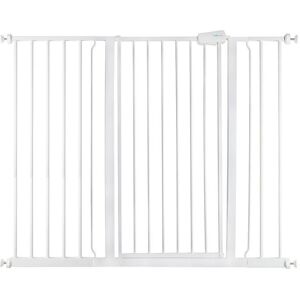 The Safetots Extra Tall Pressure Fit Gate has been designed to perform to highest standards of safety, incorporating a contemporary design to complement modern homes and modern day living. Unique features include the bespoke finish, the extra secure double locking mechanism and the additional height. Available in three colours, White, Matt Black or Slate Grey to suit all home interiors. On trend, this gate looks great, is simple to operate yet provides additional security for young families, pet owners or both. The Safetots Extra Tall Pressure Fit Gate is a pressure fitted safety gate, making it simple to install and remove without the requirement to drill any holes into the walls. The narrow size gate fits openings from 68.5cm - 75cm, and the standard size gate fits openings from 75cm to 82.6cm if used without extensions. The standard gate can be extended to a maximum width of 147.4cm with extensions. The gate has passed the EN1930:2011 Safety Standard, ensuring it is safe for