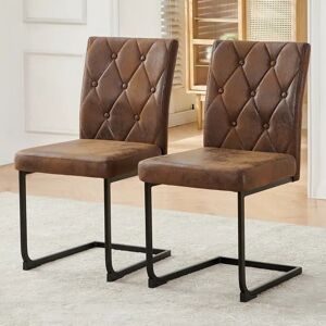 AINPECCA Dining Chairs Metal Legs 8.5cm Thick Seat Padded Home Office 4pcs Brown Suede