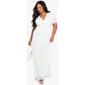 Delicate mesh fabric with dainty floral pattern throughout Flattering V-neckline that frames the dcolletage beautifully Charming puff sleeves adding a touch of romantic flair Empire waistline that creates a graceful silhouette Floor-length design offering elegant coverage with a flowing finish This enchanting mesh maxi dress from Boohoo's collection combines comfort with effortless style for those casual yet special moments. The feminine puff sleeves create a soft, romantic outline whilst the empire waistline gently skims your curves for a flattering fit. Perfect for summer garden parties or family gatherings, this dress can be styled with simple flat sandals as shown for daytime charm. Add a denim jacket and crossbody bag for brunches with friends, or dress it down further with white trainers for a contemporary casual look. The versatile pattern works beautifully across seasons - layer with a lightweight cardigan when the temperature drops. This dress embodies Boohoo's commitment to inclusive fashion that doesn't compromise on trend-led style.