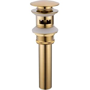 Brushed Gold Finish: Neither glitter nor reflective. Brushed gold is the warm and luxurious color.Solid Brass: Durable construction, solid brass bounce cores have good bounce and rebound resistance, seal and drain water quickly with just one push.Easy to Install: Basin drain with standard G 1-1/2" BSPP connection, very easy to install.Double Sealing Washers: High quality silicone material, soft, long aging, anti-dry cracking and stronger sealing performance, to avoid annoying water leakage.Overflow Hole: Prevents overflow - A good helper for home.