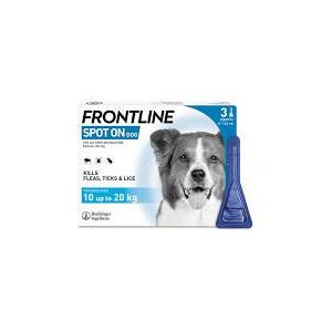 FRONTLINE Spot On Medium for dogs over 10 up to 20 kg Dogs can pick up fleas and ticks wherever they explore Prepare them for adventure with the protection of FRONTLINE Spot On Use monthly and provide a first line defence for fleas and ticks FRONTLINE Spot On - Kills fleas within 24 hours - Kills ticks within 48 hours helping to reduce the risk of tick-borne disease - Kills lice How to protect your dog: - Use monthly throughout the year for continuous flea and tick protection - Make sure all cats and dogs in your home are treated regularly How to treat a home infestation: follow the 2 steps above as well as the 2 steps below - Use a household flea treatment to kill eggs and larvae already in the home - Regularly vacuum your carpets and furnishings Checklist for using the product: - The dog is at least 8 weeks old and 2 kg - The dog shows no signs of lesions or feeling unwell If they show any of these signs do not apply and see a veterinary surgeon - The correct size of pipette is being selected according to the dog's weight How to apply: Part the fur between the shoulder blades and apply directly onto the skin in two spots 2-3 cm apart Do not bathe dogs or let them swim within 2 days after application then no more than once a week Can be used in pregnancy and lactation Do not use on rabbits How to apply FRONTLINE Spot On to your dog*: be/wgCSMlbhy2g href= https://cazaar.prf.hn/click/camref:1110lxQc/creativeref:1101l169067/destination:https%3A%2F%2Fyoutu be/wgCSMlbhy2g target= _blank >https://cazaar.prf.hn/click/camref:1110lxQc/creativeref:1101l169067/destination:https%3A%2F%2Fyoutu be/wgCSMlbhy2g How to solve a flea infestation*: be/EoGmbP396Bs href= https://cazaar.prf.hn/click/camref:1110lxQc/creativeref:1101l169067/destination:https%3A%2F%2Fyoutu be/EoGmbP396Bs target= _blank >https://cazaar.prf.hn/click/camref:1110lxQc/creativeref:1101l169067/destination:https%3A%2F%2Fyoutu be/EoGmbP396Bs How to prevent a flea infestation*: be/O3cg1hfiQzA href= https://cazaar.prf.hn/click/camref:1110lxQc/creativeref:1101l169067/destination:https%3A%2F%2Fyoutu be/O3cg1hfiQzA target= _blank >https://cazaar.prf.hn/click/camref:1110lxQc/creativeref:1101l169067/destination:https%3A%2F%2Fyoutu be/O3cg1hfiQzA *Link will open a new window to an external 3rd party website Bestpets are not responsible for the content or performance of external 3rd party websites