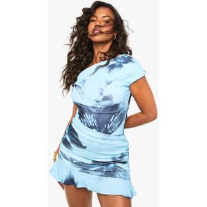 Striking asymmetrical design with flattering ruched detailing Textured fabric with floral pattern for added visual interest Figure-enhancing mini length with feminine frill hem Versatile slash neckline that can be styled on or off-shoulder Cap sleeves for a balanced silhouette that showcases your arms Make a statement on your next night out with this head-turning asymmetrical mini dress from Boohoo. The clever ruched detailing creates a flattering silhouette that hugs your curves in all the right places, whilst the textured fabric adds dimension to the bold floral print. The versatile slash neckline can be worn traditionally or styled off-shoulder for a more dramatic look. Perfect for club nights or cocktails with the girls, pair with strappy heels and statement bangles as seen on our model for maximum impact. For cooler evenings, layer with a cropped leather jacket and switch to ankle boots. This dress effortlessly transitions from summer drinks to autumn nights out - simply customise your accessories to suit the occasion and temperature.