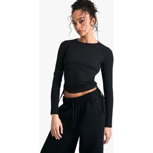 Ribbed texture for a flattering fit Long sleeves for versatile wear Side tie detail adds a unique touch Cropped length for a trendy silhouette Stretchy fabric ensures comfort and ease of movement This long-sleeved ribbed top with side tie detailing is a must-have addition to your wardrobe. Perfect for the fashion-forward woman who values both style and comfort, this versatile piece can be dressed up or down for various occasions. Pair it with high-waisted wide-leg trousers and trainers for a casual day out, or team it with a sleek midi skirt and heels for a night on the town. The side tie feature allows for customisable styling, letting you adjust the fit to your liking. Whether you're heading to a family gathering or meeting friends for coffee, this top will keep you looking effortlessly chic. Its stretchy fabric ensures all-day comfort, making it ideal for those busy days when you need an outfit that can take you from day to night with ease.