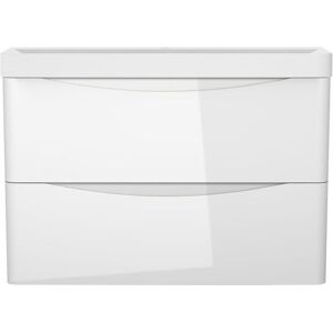 GENERAL DESCRIPTION 800mm 2 Drawer Wall Hung Bathroom Cabinet Vanity Sink Unit with Basin in Gloss White. Product features: Wall Mounted vanity unit Includes Resin basin Contemporary minimalism design without handles Soft Close Drawer Runners for smooth and quiet closure Flat Pack (requires assembly) TECHNICAL SPECIFICATIONS Dimensions: L 800 x W 395 x H 500 mm (cabinet) / L 810 x W 400 x H 135 mm (basin) Color: Gloss White Material: MDF board and Resin Single Tap Hole Net Weight: 21 kg (cabinet), 11.5 kg (basin) Not Included: Waste and Tap Includes: 1x cabinet, 1x basin (2 packages)