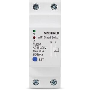 Countdown time, from 1 Min to 23 Hours 59 Mins. If the product is disconnected from , the retains all programs set up by Mobile App and works according to the set programs. With Memory function, when the product contact is in the closed state, after the power failure,and then power resumed,the product contacts still keep the closed state. Can be shared with 100 peoples by Mobile App. Limit current 80A, if load exceeds the rated max. current, the product will automatically disconnect load circuit. 1. Remote Control ON/OFF by Tuya APP or Smart Life APP at anytime from anywhere 2. The model TM607 is max. 80A 3. Schedule Time / , 30 kinds of models 4. Related Voltage: 100-240V AC 50/60Hz 5. Rated Current: 80A 6. Can set 100 On/Off programs one day or per week. 7. Mounting: Din Rail 35mm 8. Contact configuration: 1NO (SPST-NO) 9. Wifi Frequency: 2.4GHz 10. Ambient temperature range: -10℃ - +60℃ Colour: white Material: ABS + electronic components Size: 11.0 cm x 7.0 cm x 4.5 cm Package