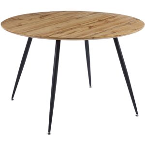 This stylish table with an oak effect top and powder-coated legs is guaranteed to turn heads and catch the eye wherever it is placed in the home. The laminated board of the table is strong and sturdy and instantly appealing with its oak effect finish; it is the perfect foil for the stylish black legs. The round table can be accommodated in rooms of any size with ease. What’s more, the table is as versatile as it is stylish. There are many potential uses that the table could have in the home. It’s up to you to decide how to get the most from this neat and appealing table. The table can be paired with the stylish matching Grey Fabric Chair to good effect. The chair shares the same black powder-coated legs as the table. Durable, hard-wearing, and incredibly easy on the eye, this round table will blend with any décor in the home. This table will accommodate 4 adults comfortably or 6 people when adults are mixed with young children. George Oliver