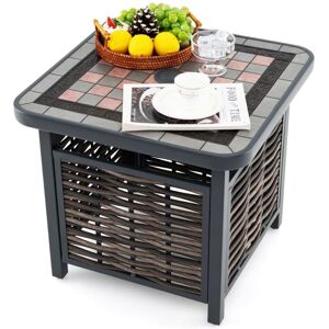 This square end table is crafted with PE rattan that gives it a natural and woven look, complementing any outdoor space. The wear-resistant resin tabletop adorned with an exclusive checkerboard pattern offers a sturdy and smooth surface, ideal for placing drinks and snacks. Equipped with an umbrella hole, this outdoor side table is ready to accommodate a patio umbrella, providing shade and comfort on sunny days. Crafted with a sturdy metal frame, the square accent table offers strength and durability. Whether placed beside a lounge chair or used as a standalone piece, this side table adds convenience to your outdoor leisure time. Side Table with Umbrella Hole: Equipped with a 3.9 cm umbrella hole, this outdoor side table allows you to insert a patio umbrella to create a shaded area for relaxation. There is also an umbrella holder underneath for fixation. Note: the umbrella is not included. Square Resin Tabletop : The outdoor side table features a weather-resistant resin tabletop for
