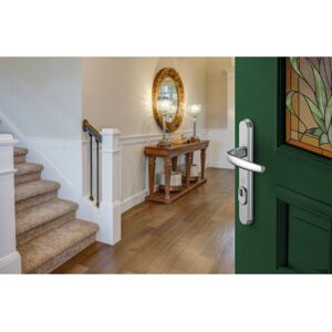Keyhole Euro-profile C/W protection cylinder cover Aluminium security handle set on a narrow backplate for a composite door Loose door handles, spring cassettes, maintenance-free slide bearing quick-fit connection with Symple Stuff solid spindle (spindle - receiver components) HOPPE