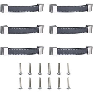 Leather Handles 6 Pieces Door Knob Kitchen Cabinet Door Vintage Leather Drawer Pulls with Screws Handle Furniture Leather Black Door Knob for Closet Study Room Living Room Specification:< br/> Material: Zinc alloy, leather Quantity: 6 pieces Colour: Black Size: Length: 150 mm Hole distance : 128mm Product features: Exquisite surface craftsmanship, after electroplating and spray paint treatment, beautiful and generous; soft and comfortable, does not hurt the hands; complete accessories, simple operation. It is a common closet accessory, widely used in dressing tables, drawers, shoe cabinets, wardrobes, kitchens, etc. Package Contents: 6 * leather handles 12 * screws Note: Regarding chromatic aberration: Please understand the subtle differences caused by monitor resolution or light problem. br/> About Size: Due to manual measurement, please allow 1-2mm error in size. About the product: When using this product, if you have any problems, please feel free to contact us, we will try our