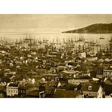 Artery8 Wall Art Print San Francisco Oakland Bay Bridge Framed Beige W7 inch x H9 inch
