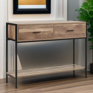Dual Storage Configuration: This industrial hallway table is equipped with a generous tabletop, 2 pull-out wooden drawers, and a lower storage shelf. As a 2-tier console table, it caters to your needs for both open and closed storage, providing versatile options for displaying and organizing your belongings. Robust Structure and Elegant Design: Crafted from premium engineered wood with meticulous workmanship, this wooden console table exudes durability and stability. The robust steel frame ensures overall steadiness. The combination of wood grains and metal structure adds a stylish touch to complement any home decor. Multipurpose Functionality and Broad Applicability: Beyond a console table, this versatile piece doubles as a TV stand, storage shelf, display table, and sofa table behind the couch. Its multifunctional design makes it suitable for various settings, including entryways, living rooms, and dining rooms. User-Friendly Features: The drawers are equipped with sliding rails and metal handles, ensuring easy access to your stored items. Additionally, the adjustable foot pads provide stability on uneven surfaces, enhancing the overall balance of the behind-couch table. Effortless Assembly and Maintenance: The wooden foyer table with drawers comes with clear instructions for a quick and straightforward installation. The smooth and waterproof surface allows for easy cleaning with a soft rag, ensuring hassle-free maintenance. ClassicLiving