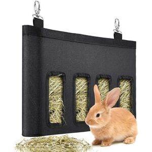 Material: The hay bag is made of Oxford cloth and is well made. The metal hook is stable and strong and cannot be easily torn off by rabbits. The bag does not take up much space in the cage. Easy to install: The feeder bag is equipped with a hook, which can easily connect it to a wire cage and adjust its height accordingly. Easy to carry: This hay bag is soft and foldable, and can also be hung with a shoulder strap for easy carrying and storage. Window design: There are 4 windows on the hay bag, the rabbit can put its head into the hole to eat the hay, the hay stays in place, reducing hay waste. Also prevents food from coming into contact with rabbit droppings. Perfect for Pets: Ideal for rabbits, chinchillas, guinea pigs, guinea pigs and other small herbivorous animals.