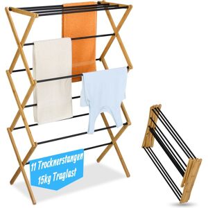 Relaxdays folding clothes dryer, 11 rails, HxWxD: 115 x 73 x 33 cm, bamboo, metal, tower dryer, natural/black