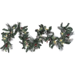 Charming Artificial Garland with LED Lights. Decorate your home for Christmas with even more accent pieces to feel the atmosphere of the festive season. This garland comes with inbuilt LED lights that will gently illuminate the whole interior, and the included timer feature can be set to switch off automatically after 8 hours. Slightly frosted branches in composition with pine cones and berries give off a natural feel without much maintenance. Place this decoration on the table or on the fireplace and combine it with other decorations to introduce the Christmas spirit to your interior. Details: Product Type: Garland Style: Rustic General Color: Green, White LED Colour Temperature: Warm White Material Type: Synthetic Material Main Material: Synthetic Material Shape: Irregular Wattage: 0.27 W Handmade: No LED Luminous flux: 3 LED: Yes Voltage rating: 4.5 V Dimensions: Depth: 18 cm Length: 180 cm Height: 10 cm Weight: 0.8 kg Offer Includes: 1 x Decoration, Not Included: Batteries Key