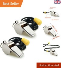 General description Package includes 6 pieces of stainless steel whistles with lanyards. These whistles are an ideal choice for referees, coaches, teachers, and sports officials. They are suitable for various indoor and outdoor sports activities, including hiking, boating, camping, hunting, emergency survival, and competitions. Technical specifications Material: Stainless steel for the whistles Lanyard material: Durable nylon Lanyard colors: Yellow and black Usage These coach referee whistles produce a loud and crisp sound, effectively attracting attention in any circumstance. Each whistle comes with a lanyard for convenient use, allowing you to hang it around your neck and keep your hands free.