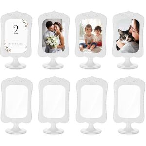 The detachable sign holder consists of a frame and a base, making it easy to assemble. Simply insert your cherished pictures into the plastic clear panels and slide them into the top of the floating frame. This ensures that your photos remain safe, protected, and unaffected by any color fading or loss of gloss, allowing them to look great for years to come. They can be used as picture frames for wedding centerpieces, upright placard holders at social events or as a tasteful method of displaying table, seat, or guest information. This table number holder is a fun way to a personal touch to an entryway table, centerpiece, desk, or kitchen area. The sturdy construction of these desk picture frames are a great addition to a restaurant or formal event when you need a classy way to display the name of a party, the reservation status of a table, or seating directions of another kind. Widely Used: menu holder/ picture frame/ sign holder/ table number...