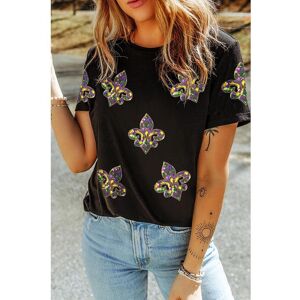 Our styles are designed with a trendy fitted look in mind following an international size standard. For the best fit we suggest choosing one size up from your usual. Be sure to check our sizing chart to find your perfect match! Sequin Fleur de Lis graphic adds a sparkling touch Features vibrant Mardi Gras symbols Made from soft comfortable fabric Perfect for pairing with casual bottoms Ideal for parades or celebrations Material: 62% Polyester 32% Cotton 6% Elastane