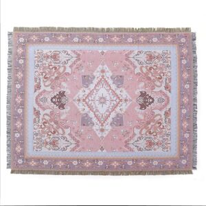 LINGHHANG 1 Piece 160x130cm Pink Pattern Knitted Plaid Blanket Decorated with Fringes Bohemian Simple Soft Comfortable Protect Against Cold for Sofa Couch