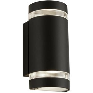 Sheffield Outdoor 2 Light Curved Wall Bracket Black, Clear Diffuser IP44 2700K Finish: Black, Clear Material: Die Cast Aluminium, Glass IP Rating: IP44 Height: 24cm Max Height: 23.5cm Width: 10cm Projection: 10cm Diameter: 6.5cm Lamp Type: GU10 No. of Lamps: 2 Bulb Included: Yes Dimmable: Yes - Dimmable Bulbs Required Kelvin: 2700K (Very warm white) Lumens: 460Lm Weight: 1kg Wattage (max): 3W
