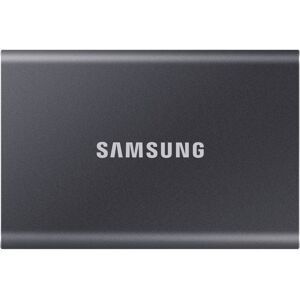 Discover the large selection and decide which suits you best Samsung's Portable SSD T7 gives you the speed and security in a small package, whether you're storing important business documents, games, or movies. Even large files are transferred impressively quickly and are well protected for a long time. Whether professionally or privately, the T7 offers you reliable performance for everyday use. It's 9.5x faster than an external HDD, twice as fast as the T5 SSD and is built to last. Super-Fast Data Transfer The Samsung Portable SSD T7 allows you to transfer huge files in mere seconds with the incredible speed of USB 3.2 Gen 2. Thanks to the built-in PCIe NVMe technology, sequential transfer speeds of up to 1,050/1,000 MB/s, the T7 is 9.5x faster than an external hard disk drive* (HDD) and twice as fast as the T5. Robust Protection Against Data Loss Thanks to its robust metal housing, your data can withstand a fall from a height of up to two meters without damage. In addition, access can be protected with a password based on AES 256-bit hardware encryption. A plus in security, to which the three-year manufacturer's warranty from Samsung also contributes. Automatic Protection Against Overheating Samsung's Portable T7 SSD relies entirely on encapsulated phase change materials (ePCM) and dynamic thermal guard technology for temperature management. This ensures that the T7 does not become uncomfortably hot and maintains its optimal operating temperature even under heavy use. Feather Weight and Fits into Every Pocket Samsung T7 is super portable and sits comfortably in the hand with a stable light metal housing, only about the size of a credit card and a feather weight of 58g. Simple Management of Password and Updates Set up passwords using the management software featured with the Portable SSD T7. Get the latest firmware updates from your PC and Mac, you can also install the mobile app for Android smartphones and tablets. Connects Almost Anywhere The Samsung T7 is compatible with many devices, e.g. with various PCs, Macs, Android devices and gaming consoles. Included in the box are Two USB cables (Type C-to-C and Type C-to-A) for added practicality.