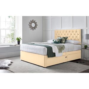 This beautiful divan bed features an upholstered headboard that adds a contemporary chic look to your bedroom and is filled with thick foam to add extra comfort. Sturdy wood frame construction and a wooden slat system add extra stability and safety. Make this divan bed part of your dream bedroom setup. The divan bed with headboard is covered in fabric for a luxe look, and it's deeply tufted for added luxuriousness. Wayfair Sleep Size: Double (4'6), Colour: Cream, Storage Type: 4 Drawers
