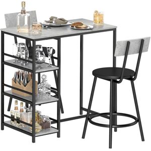 Compact dining, for you and company with this HOMCOM three-piece dining set. Comes with a bar table and two bar chairs; the table is fitted with three shelves to provide easy-reach space for tableware and more. When done, you can tuck the chairs into the table to save space. HOMCOM 3 Piece Breakfast Bar Table Set with Storage Shelves, Light Grey