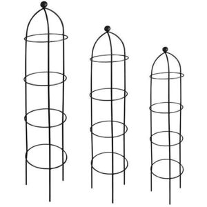 Give your climbers and trailing vegetables support whilst adding style to your garden with one (or three!) of our Growing Obelisks. These obelisks are handmade in our West Sussex factory and can be purchased individually or in a set of three. Each is a solid piece constructed out of sturdy steel, which can either be coated in a hard-wearing black plastic or left raw for a rusty finish. The Growing Obelisk trio stands proud at 3ft 5", 4ft 6", and 5ft 6". Each obelisk features four internal support rings to provide growing assistance to plants throughout the various stages of their natural life cycle. The strong and robust legs can easily be pushed into the ground for anchorage. The metal garden obelisk has a slender, streamlined frame and an elegant and understated domed top, with a decorative finial embellishment. In a small garden, they can be added to maximize your plant growing space. In a larger space, they can create independent areas of focus or attractive centrepieces. As the