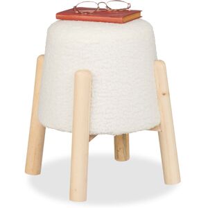 This stylish and durable stool is a decorative piece of furniture for your living space. Whether beside the sofa in the living room, in the hallway, or in front of the dressing table, this plush stool can be placed in various ways. The cosy faux fur and soft upholstery make it a comfortable seating option. The white ottoman stands out visually with its teddy fur cover and contrasting natural wooden legs. Faux Teddy Fur Ottoman in Detail - Size H x D: approx. 40 x 30 cm - Load capacity: approx. 80 kg - Weight: approx. 1.7 kg - Material: Polyester, pine wood, MDF - Colour: white, natural Fluffy Upholstered Stool - Elegant design featuring soft teddy fur and wooden legs - Soft foam padding ensures a comfortable seating experience - Suitable as a couch stool, footrest, makeup stool, and more - A charming piece for hallways, living rooms, guest rooms, and bedrooms - A practical additional seating option for your home
