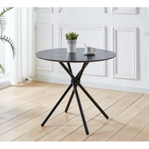 This stylish table with black wooden effect top and powder-coated legs is guaranteed to turn heads and catch the eye wherever it is placed in the home. The laminated board of the table is strong and sturdy and instantly appealing with its black finish; it is the perfect foil for the stylish black legs. The round table can be accommodated in rooms of any size with ease. What’s more, the table is as versatile as it is stylish.There are many potential uses that the table could have in the home. It’s up to you to decide how to get the most from this neat and appealing table. The table can be paired with the stylish matching Grey Fabric Chair to good effect. The chair shares the same black powder-coated legs as the table. Durable, hard-wearing and incredibly easy on the eye, this round table will blend with any décor in the home. George Oliver