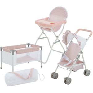 Teamson Kids' Polka Dot Princess 2 pc. Versatile Baby Doll Carrier & Infant-Style Car Seat Set lets your child nurture their baby doll on the go. The infant-style car seat lets dolls lay flat for comfy naps, with a retracting handle and adjustable harness for safe travels. When it's time for cuddles, the carrier's adjustable straps transform it from a back carrier to a front carrier for ultimate convenience. for dolls up to 18 inches, in a pink and gray polka-dot polyester. Teamson Kids Polka Dot Princess Baby Doll Carrier & Car Seat Set in Pink
