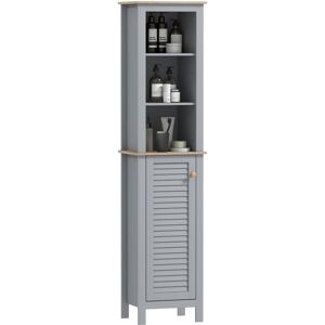 Bathroom storage doesn't always have to be clean and contemporary. If you're looking for something a little different - go for this narrow freestanding cabinet from kleankin. A slightly boxy shape pairs with the mid-grey tone and the contrasts with the wood-effect panels for some retro rustic charm. It is formed of a bottom cupboard and three upper shelves for decent amount of open and discreet storage. It's made from MDF, so it's durable, with the four stump legs preventing direct contact with the floor. Finished with a wooden handle on the door to open and close easily. Specifications: ● Color: Grey ● Material: MDF ● Overall Dimension: 39W x 30D x 168Hcm ● Open Shelf Size: 28W x 26.6D x 24.5Hcm ● Inner Shelf Size: 28W x 26.6D x 24.5Hcm ● Weight Capacity: 40kg (total), 7kg (shelf) ● Item Label: 834-315 Features: ● Features three open shelves and bottom cupboard - great for towels, toiletries, cleaning products and more ● Wooden handle on door to open and close easily ● Adjustable