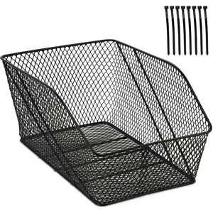 With this practical luggage carrier basket, even heavier bags and backpacks can be transported comfortably on your bike. The metal bicycle basket is also ideal as a school bag holder on the way to school. Using the cable ties, the basket can be mounted on the luggage carrier of an adult or children's bike in no time. The close-meshed design with reinforced struts not only provides the necessary stability but also prevents smaller items of luggage from getting lost. Bicycle cage details - External dimensions H x W x D: approx. 22 x 30 x 46 cm - Interior dimensions H x W x D: approx. 20 x 29 x 44 cm - Max. Load capacity: 15 kg - Weight: approx. 1 kg - Material: Steel - Colour: Black Bike steel basket for the luggage carrier - Ideal as a school bag basket, for shopping bags, backpacks and more - Quick mounting on luggage carrier thanks to included cable ties - Suitable for children's and adults' bikes or e-bikes - Stable thanks to tightly knit steel wire and reinforced frame - Classic