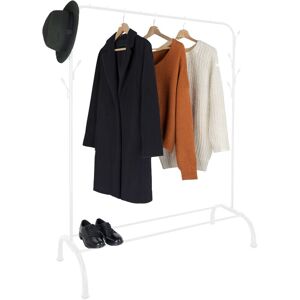 Relaxdays clothing rack, HxWxD: 148 x 110 x 40 cm, shelf, hooks & rail, metal, coat stand, white