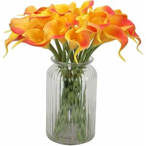 Package: each bouquet of calla lilies has 9, without vase. Size: the total height of the artificial calla lily is 34 cm. Material: the Flowers are made of silk and the stems are made of plastic. They can live anywhere and do not need care or feeding. Multi-use: very beautiful lifelike artificial lily, perfect for weddings, festivals , parties, DIY bouquets, home decoration, bouquets, centerpieces, wedding arrangements, bridal showers, baby showers, wreaths and other decorations. Features: Practical alternative to real flowers, the artificial calla lily can stay lively and vigorous without watering or direct sunlight. They can be used with other plants to create a better effect. You can enjoy the beauty of realistic artificial calla lily without worrying about sunlight, watering, pruning or other long-term care, saving you money lots of time and effort. Color:Sunset Red 9pcs Realistic Calla Artificial Flowers, for Wedding, Office, Home, Kitchen, Decoration party, event Description: