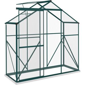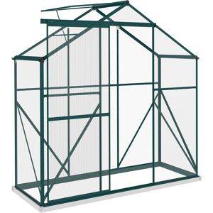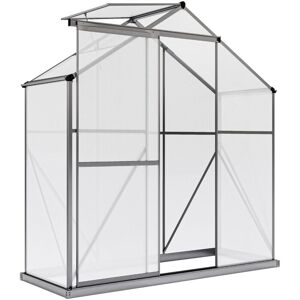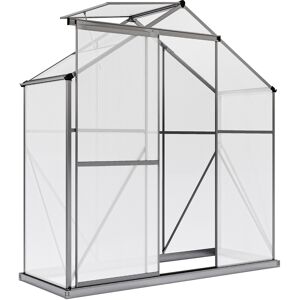 The magic of gardening strikes again with this Outsunny greenhouse. The 70 x 200cm size is long and narrow - fitting in lots of vegetables and flowers. The powder coated aluminium frame means a strong core, with gutters built in for effective rainwater drainage. Twin polycarbonate walls create a safe growing space for plants shields against rain and wind, whilst allowing 90% of nourishing sunlight to pass through. A sliding door for easy access, complete with a five-level top window. Specifications: ● Colour: Silver, Clear ● Material: Aluminium alloy, Polycarbonate ● Overall Dimensions: 190W x 70D x 200Hcm ● Interior Space: 183W x 63Dcm ● Door Size: 62W x 172Hcm ● Window Size: 61W x 59Dcm ● Foundation Size: 191W x 70D x 5Hcm ● Item Label: 845-950V00SR Just so you know: this item ships and arrives in separate boxes. Delivery times may vary with each box. Box quantity: 2 Features: ● 4mm twin-wall polycarbonate sheets create safe shelter for inside plants ● Powder-coated aluminium frame