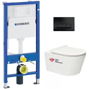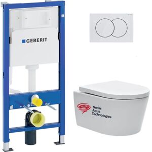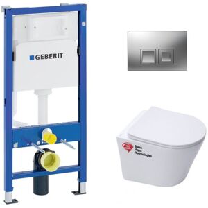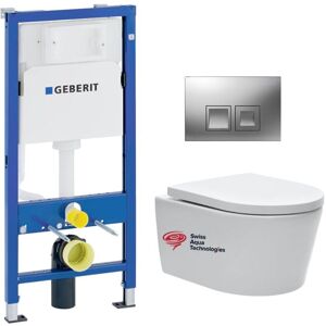 Features of the Geberit Toilet set Duofix cistern frame 112cm + WC rimless SAT Brevis + Ultra-thin seat, softclose + Matt chrome flush plate (BrevisGeb2) : Geberit Duofix UP100 support frame + cistern for WC 112 cm (458.103.00.1) Swiss Aqua Technologies Brevis Wall-hung toilet without rim, invisible fixings + ultra-thin seat, softclose (SATBRE011RREXP) Geberit Two-button flush plate DELTA35, Chrome (115.135.46.5) Discover the easy and seamless installation of the Geberit module with this helpful video guide. Click the link to get started! https://www.youtube.com/watch?v=QgP0aSEW2ZE . Geberit Duofix UP100 support frame + cistern for WC 112 cm (458.103.00.1) : 112 cm galvanised support frame with adjustable feet from 0-20 cm UP100 water tank (with 25-year manufacturer's warranty on spare parts) pre-painted frame in Geberit blue support feet with cm scale marking swivel feet for mounting in UW50/UW75 profile crossbar for cladding support 2 threaded rods M12 for fixing the ceramic tiles