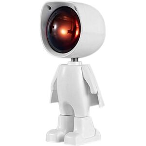 Product Name: Robot Sunset Projector Feature: switch, stepless dimming, USB charging USB cable length: 98.5cm Additional features: the projection lamp head is detachable, 360 degree rotatable Type: Sunset Red color: white Material: plastic size: 7 x 7 x 14cm Package Contents: 1 x Projector Lamp 1 x USB Cable Only the above package content, other products are not included. Note: Light shooting and different displays may cause the color of the item in the picture a little different from the real thing. The measurement allowed error is +/- 1-3 cm.