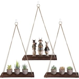 Viesap Rustic Shelf Set: 3 wooden boards, 3 ropes, 3 hooks, 3 rings. Easy to install, just follow the simple instructions and you can assemble it in minutes. These shelves create versatile storage and decoration options that complement or accentuate any design style. Premium Material: Made from paulownia wood and jute rope. Paulownia wood is known to be one of the strongest and lightest woods available in the world, our rustic shelves with 22'' vertical spacing provide much more storage space for display. Stable Wall Shelves: Each shelf is hung by two thick jute ropes and each rope in a triangle shape when knotted, strong and stable for wall shelves. Just hang it on a nail, screw or hook. A good choice for home decor and clutter reduction. Practical and Decorative: Install the rustic wood hanging shelves in bedroom or bathroom to safely hold beauty products/cosmetics, display photo albums, toys, artwork, trophies, small plants and book on living room wall, use in kitchen to hold