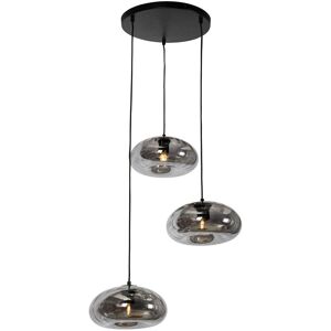 QAZQA Art Deco Pendant Light Black with Round Smoke Glass 3-Light - Ayesha Pendant lamp Ayesha is a real must-have for an Art Deco interior. It is finished in a black and grey colour and made of smoke glass with steel. Thanks to the 3 light points of the Ayesha, this pendant light immediately stands out! The lamp has a diameter of 56 cm and a height of 120 cm. Make sure you order light sources with an E27 fitting to complete the lamp. Go for extra atmosphere in the house by dimming the pendant light. Ayesha is dimmable, dimmer is not included. What a great lamp Ayesha is. Always the right atmosphere in the house with the Ayesha pendant light. Bulb holder: E27 . Max 3 x 25 W, 230 V Suitable for: LED Connecting voltage: 220V/230V Protection class: IP20 Dimmable, dimmer not included,No, without cord and plug Lightsource: Exclusive The QAZQA Art Deco Pendant Light Black with Round Smoke Glass 3-Light - Ayesha is Black. Suitable living spaces for this lamp are: Indoor lights, Dining room,
