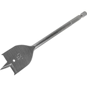 Faithfull Flat Bits produce a clean cut at a fast and efficient rate. They will bore all types of timber and will perform just as well with, or against the grain. These bits are also suitable for cutting MDF, plastics and plasterboard. The whole bit is forged from one piece of carbon steel and is heat-treated for extra strength and durability. All sizes feature a non-slip 1/4in hexagonal shank with a locking mechanism compatible with adaptors or chucks with a built-in quick-release feature. All sizes, except for the 6mm and 8mm flat bits, have a grooved tip and extended spurs to produce a clean cutting area, and faster boring speed.This Faithfull Flat Bit has the following specification: Diameter: 38mm.Overall Length: 151mm.Additional Information:• Diameter (mm): 38• Overall Length (mm): 151• Pack Qty.: 1