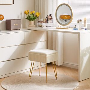 【Adjustable LED Mirror】-- This dressing table comes with a charming gold mirror with LED light, provide 3 color modes: warm yellow, natural light and bright white. Long press the touch switch to adjust the light brightness of each mode, can meet your different needs, perfect for home, salon or live broadcast Canora Grey