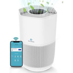 The Sciaire Essential air purifiers actively clean and deodorize the air using ions produced by ion emitters that seek out and bond with particles, neutralizing 99.90% of bacteria and viruses on contact. The 3-in-1 filter system includes a pre-filter, HEPA filter, and activated carbon filter removing 99.95% of airborne particles as small as 0.1 microns that can trigger allergies such as pollen, dust, smoke, pets dander, mould, odours, and VOCs. Ions are a purifier that breaks down molecular structures of odours and an activated carbon filter to neutralize them. 360° delivery system purifies 214 ft² of air 4.8 times per hour. Perfect for home, bedroom, office, baby nursery, kids room, and more. The Sciaire Essential also includes key functions such as a real-time air quality indicator, a smart auto mode function, is wi-fi enabled to connect your device with the DH Lifelabs App, and quiet operation with noise levels as low as 23 dB, ensuring that it will not disturb your sleep.