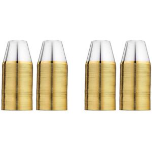 [High Quality] Made of plastic, non-toxic and odorless, sturdy and not easy to crack [Gold Rim] The cup is transparent with gold rim design, perfect for displaying such as wine, cola, cocktails, champagne, martini beer, soda, desserts, etc [Easy to Clean] Support after-party cleanup, save time, just wash with soap and warm water and dry and stackable storage [Size] Capacity: 270 ml, a total of 120 cups, can meet the needs of any party celebration [Applicable] Elegant appearance, perfect for use in weddings, receptions, parties, holidays, catering events, birthdays, baby showers and any occasions Color: transparent + gold Material: plastic Size: 9 oz 5.2 x 7 cm Package Contents: 120 wine glasses Only the above package content, other products are not included. Note: Light reflection and different displays may cause the color of the item in a little different from the real thing. The measurement allowed error is +/- 1-3 cm.
