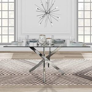 Enhance your dining space with this 160cm Dining Room Table, designed to comfortably seat 4 to 6 people. This elegant piece features a sleek chrome stainless steel frame paired with a durable tempered glass tabletop, combining modern aesthetics with everyday functionality. The chrome metal base offers a contemporary, polished look, while the clear glass surface adds a touch of sophistication, making it an ideal fit for any modern kitchen, dining room, or breakfast nook. Metro Lane