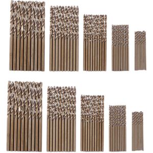 M35 Cobalt Steel - Made from M35 cobalt steel, with added molybdenum and cobalt, creates a hardened alloy, measuring up to 67 hardness, for significantly deeper cutting and extended life, up to twelve times better than an average drill bit. No center punching required - 135° cutting points are self-centering and penetrate quickly with less pressure. No "walking" or "wandering" For Stainless Steel - Particularly effective for cutting hard metals such as stainless steel and cast iron, although can also be used for softer materials. Not for hardened steel / high carbon steel. Try adjusting the RPM when it doesn't penetrate. 50pcs Set - The set includes 50pcs M35 cobalt steel metric twist drill bits: 1mm, 1.5mm, 2mm, 2.5mm, 3mm, 10pcs of each size. cobalt Cobalt drill bits are not made of pure cobalt, but a steel alloy containing a certain percentage of cobalt. The 5% alloy is called M35 grade. Cobalt increases the strength of steel and makes it more heat resistant. Color: Gold Material: