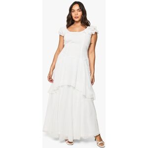 Flowing maxi-length silhouette with tiered ruffle detailing for added movement and dimension Flattering V-neckline complemented by delicate flutter sleeves Crafted from lightweight woven crepe fabric that drapes beautifully Cascading ruffle embellishments create a romantic, feminine aesthetic Inclusive plus-size design that celebrates and enhances your curves This enchanting chiffon maxi dress from Boohoo combines effortless style with statement-making details. The tiered ruffle construction creates visual interest while the flowing silhouette ensures comfort for all-day wear. Perfect for transitioning from day to night, pair with flat sandals and delicate jewellery for a casual daytime look, or style with strappy heels and statement accessories for evening occasions. The versatile design works beautifully for garden parties, summer weddings or sophisticated dinner dates. The flutter sleeves provide just the right amount of coverage while maintaining an airy, elegant feel. This dress embodies Boohoo's commitment to inclusive fashion that doesn't compromise on trend-led style - a wardrobe essential that can be dressed up or down depending on the occasion.