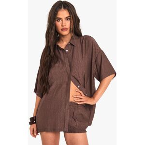 Boohoo Womens Textured Stripe Short Sleeve Shirt - Chocolate Viscose - Size 14 Uk