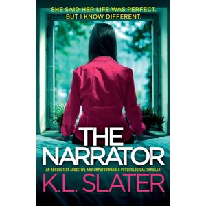What if the chance of a perfect life... put your daughter in grave danger? Being a single mother is tough, but I'd do anything for my little girl Scarlet. I'd given up on my career as a voice actor when the call came, but suddenly I was the new narrator for a secret book from bestselling author Philippa Roberts, who has been missing for eight months. It was a lifeline for me and my daughter. I hated that it meant leaving Scarlet with my ex in his perfect new home with his perfect new girlfriend. But I knew it was the right thing to do. But as I start reading Philippa's new novel, I start to wonder if it's no coincidence that I've been chosen to narrate it. There's something hidden in the pages of this book, I'm sure of it. Some clue to Philippa's disappearance. And I don't feel safe. I think I'm being watched. My room has been searched. And then my ex's girlfriend calls in tears and everything starts to click together. If I don't find answers fast, I'll lose more than my second chance. I'll lose my daughter. A completely gripping thriller that will hook you in from the first page and leave you gasping out loud. Fans of Our House, The Woman in the Window and The Wife BetweenUs won't be able to put The Narrator down! See what everyone is saying about The Narrator: 'I absolutely loved the twisty plot being set in the publishing world. The storyline kept me guessing right until the end. I couldn't put it down as I was so desperate to know what had happened to author' Jtayauthor, âââââ 'I raced through this... Gripping from the start... 5 WELL DESERVED STARS!' Goodreads reviewer, âââââ 'I devoured this book in one sitting, I just couldn't put it down when I started it... I was hooked from page 1... Fabulous.' Goodreads reviewer, âââââ 'Brilliant... I couldn't stop turning the pages until the shocking ending. Full of twists and turns, it was brilliant! Goodreads reviewer, âââââ 'Wow what a book, kept me hooked from start to finish' Goodreads reviewer, âââââ 'Wow! I definitely enjoyed reading this one! This book had suspense, intrigue, action, mystery, and so many crazy twists! The storyline was very interesting and had me glued to my Kindle! I highly recommend reading this book as it was well worth reading!... Don't miss out on this one!' Netgalley reviewer, âââââ 'Another corker of a book from KL Slater! As always this was full of twists and turns and I didn't see that ending coming!!... I raced through this one over the course of two nights....brilliant!' Goodreads reviewer 'Wow!... Such great reveals with a magic touch. Perfectly developed characters that kept me flipping pages into the night.' Goodreads reviewer, âââââ