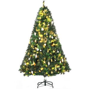 Your christmas tree set up - ready quickly from out the box. This HOMCOM 5ft artificial piece comes with lights, baubles, decorations and a 'Merry Christmas' banner - a sparkling design, with room to add on own decorations if you want. Made from tough plastic, this is an artificial design: strong and sturdy and suitable for yearly use. Formed of three separate pieces to easily fit together. Also comes with a steel base, so it stands steady. HOMCOM Decorated Artificial Christmas Tree with Warm White LED Lights, Auto Open in Green Size: 6ft